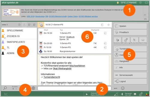 | Die Buchstaben sind Abkürzungen für Skatclubs, die auf dem Server regelmäßig spielen (z.B. SP = Skatprofis) | |