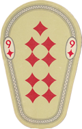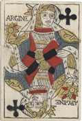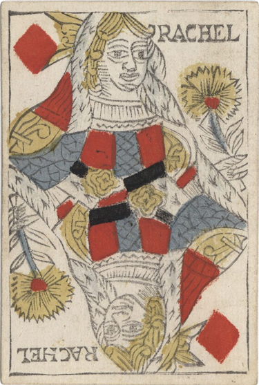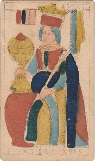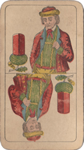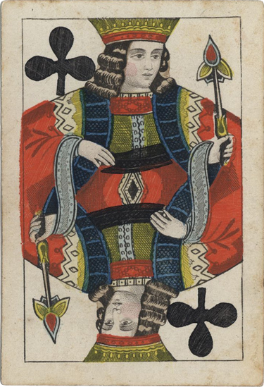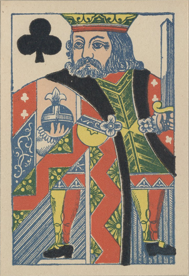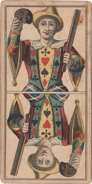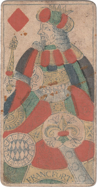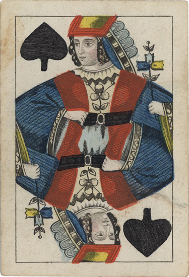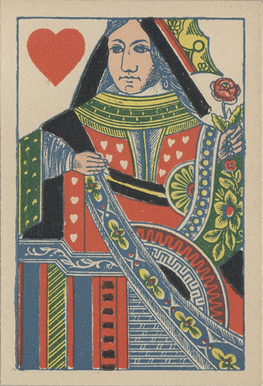 Scat-Blatt aus der ersten Altenburger Spielrunde, kolorierter Holzschnitt, Christian Theodor Traugott Sutor, Naumburg um 1820