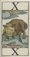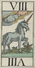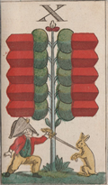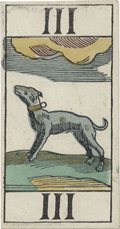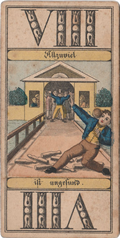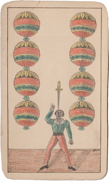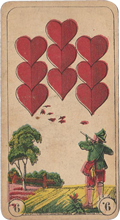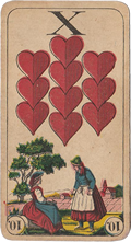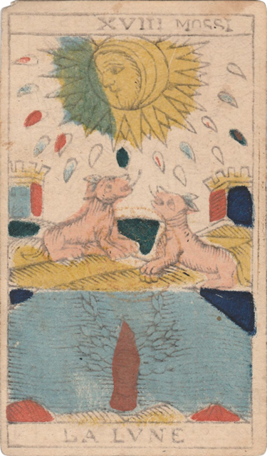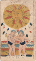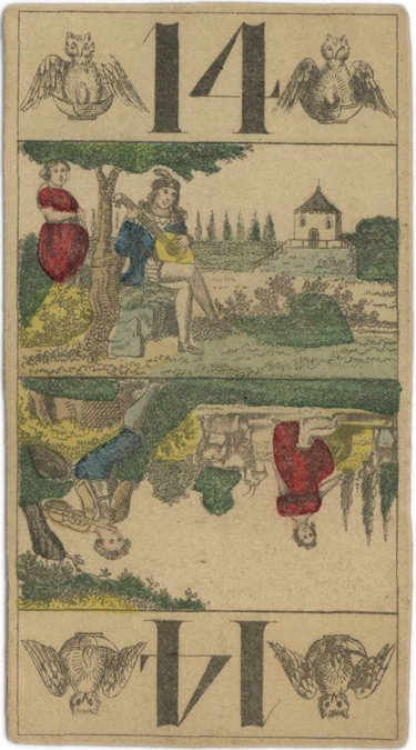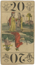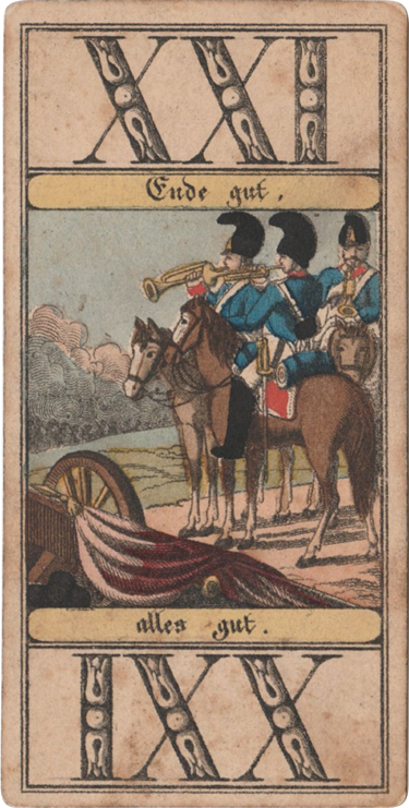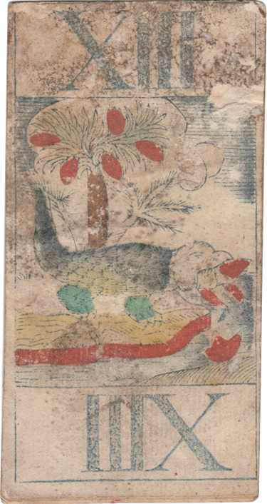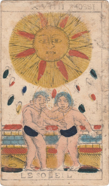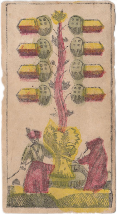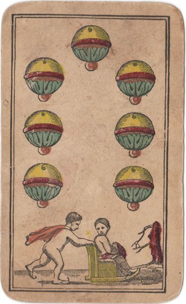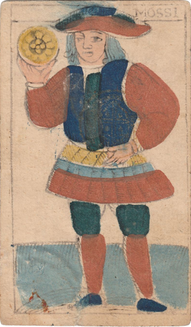 Italienische Tarockkarten (Tarocchi), kolorierter Holzschnitt, Mossi, Turin um 1830