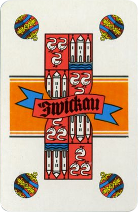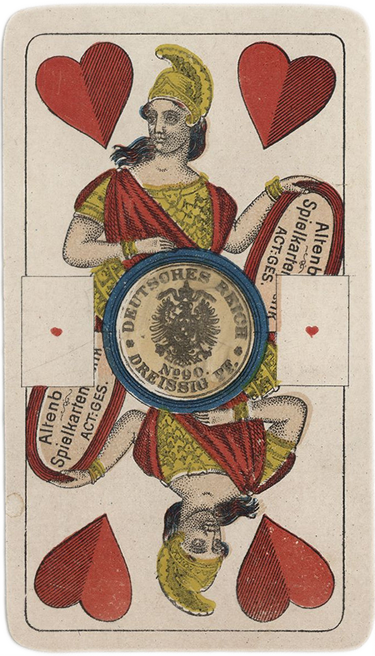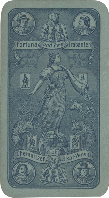 Skatkarten für einen Chemnitzer Club, Lithografie, Vereinigte Stralsunder Spielkartenfabriken A.G., Chemnitz um 1880