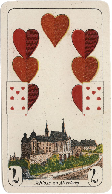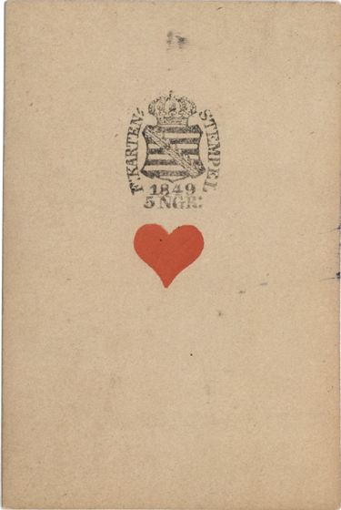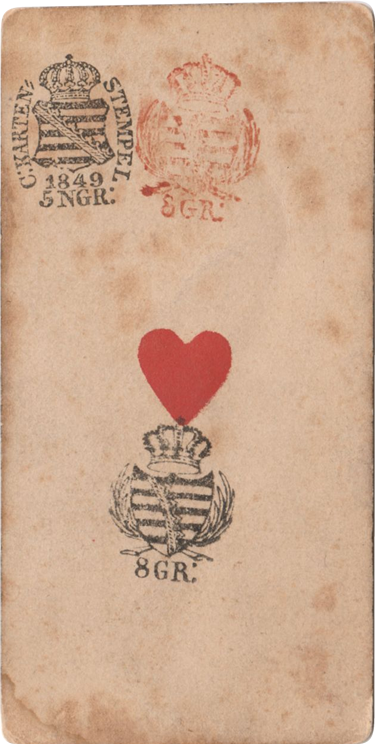 L’hombre- oder Whist-Spielkarten, kolorierter Stahlstich, A. Schultz, Freiberg 1849