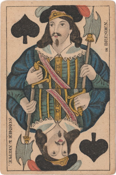 L'hombre Spielkarten, kolorierter Kupferstich, Sommer & Seupke, Dresden 1849