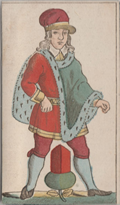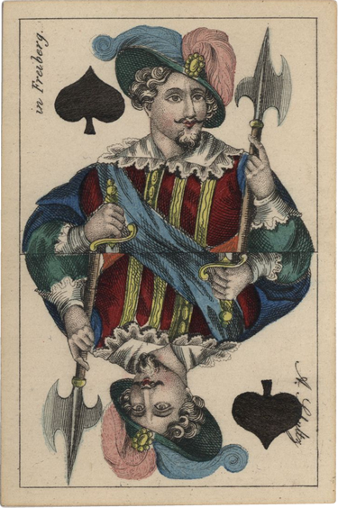 Volksspielkarte, kolorierter Holzschnitt, vermutlich Augustin Pfeffer, Leipzig um 1580