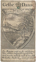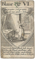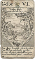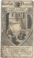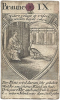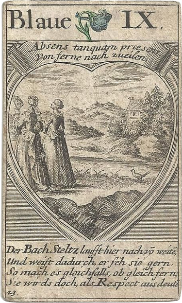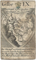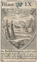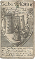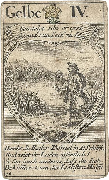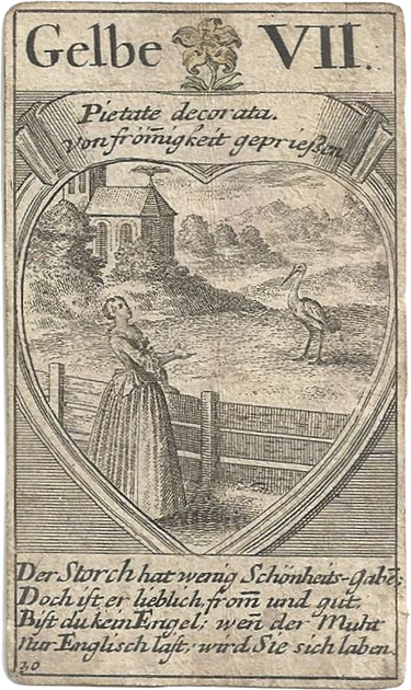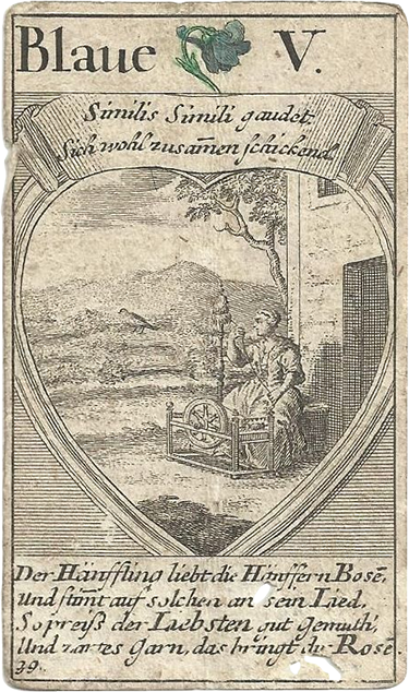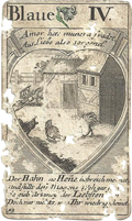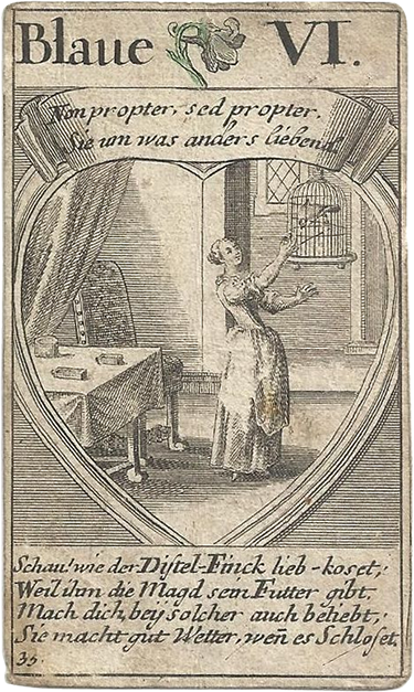 Liebes-Orakel, kolorierter Kupferstich, unbekannter Hersteller, wohl Nürnberg um 1700