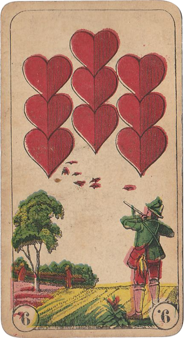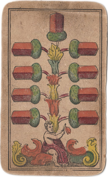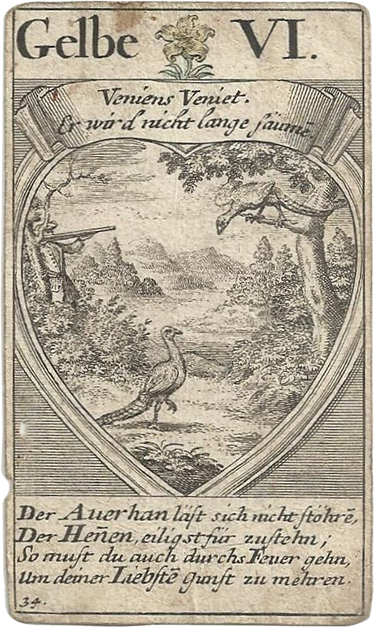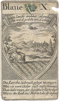 Rümpf- oder Solo-Karten, kolorierter Holzschnitt, Christoph Heinrich Scharschmidt, Buchholz um 1780