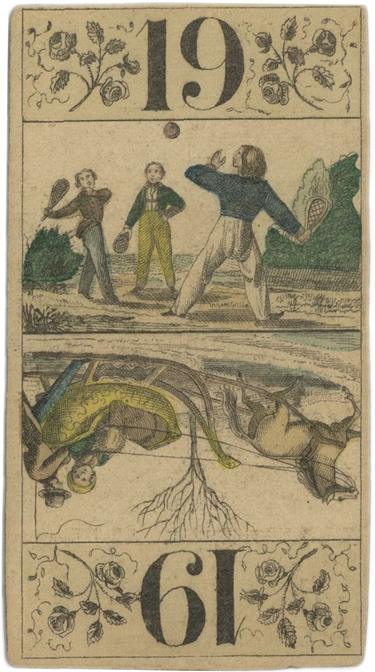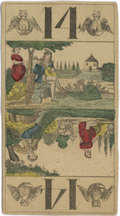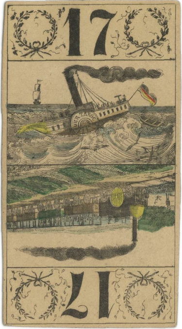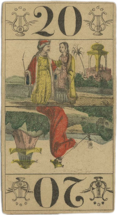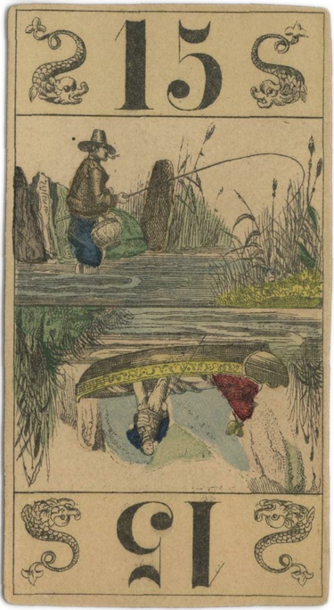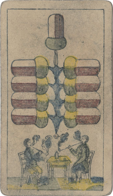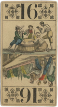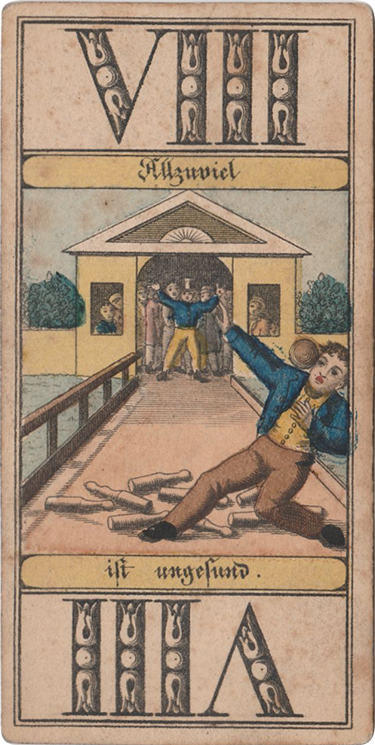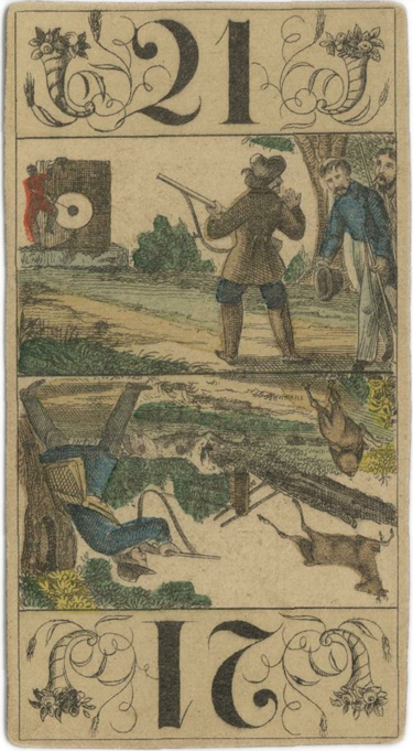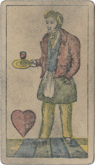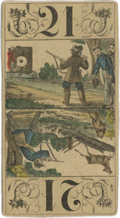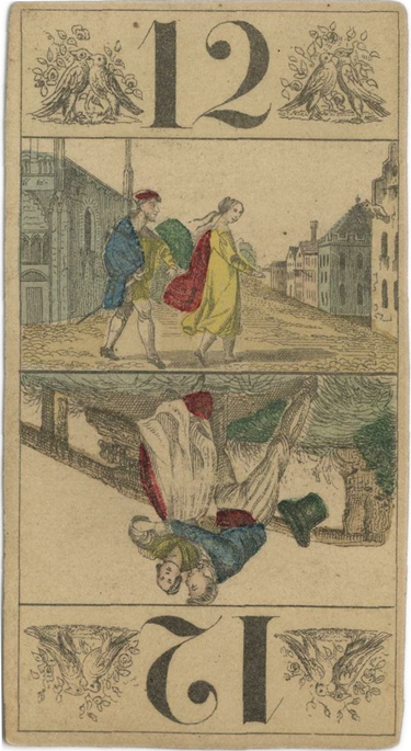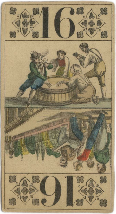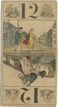 Tarock mit Szenen aus dem Leben der Zeit, kolorierter Stahlstich, Carl Ludwig Wüst, Frankfurt um 1850
