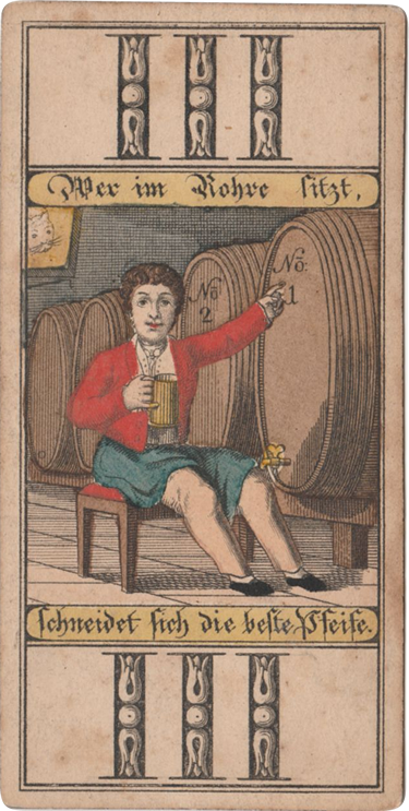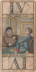 Sprichwörter Tarock, kolorierter Kupferstich, Friedrich Gotthelf Baumgärtner, Leipzig (mehrfach versteuert, z.B. 1849) um 1830