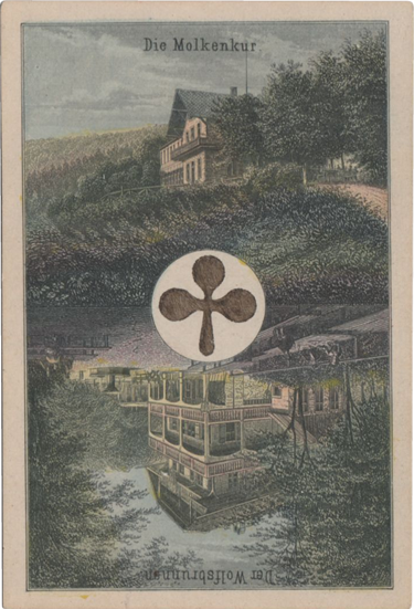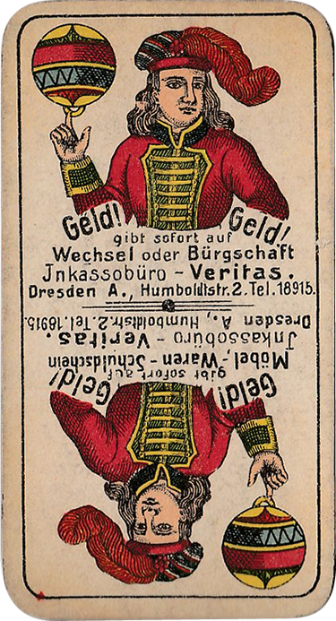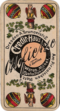 Skatkarten mit Werbung auf der Bildseite um 1900