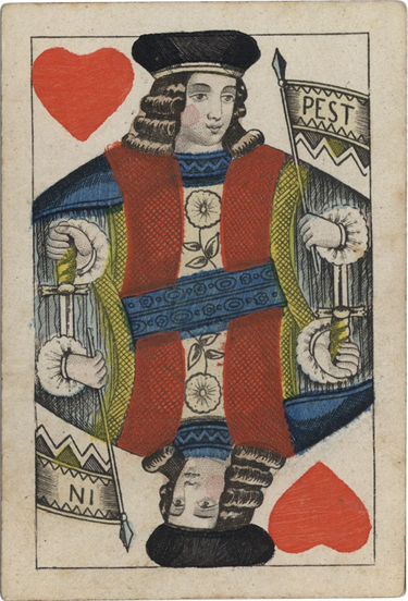 Wiener Bild, kolorierter Kupferstich, 1. Ungarische Spielkartenfabrik, Budapest um 1870